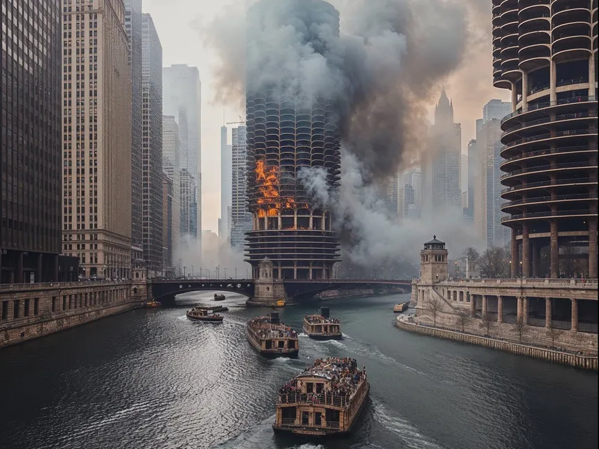 مع المشهد الأول في الفيلم ندرك أننا في الولايات المتحدة الأميركية في زمن ما مستقبلي، وإن كان غير بعيد، وهناك رئيس ملامحه شبيهة برئيسي أميركا الحالي والسابق، تبدو عليه الحماقة، والشر، يتدرب على إلقاء خطاب، تتفتت الكلمات الجوفاء، من نوعية استعادة العظمة الأميركية، والقضاء على الخونة، قبل أن يلقي بالخطاب عبر الإذاعة، والذي تتردد أصداءه في شوارع تموج بالقتل والوحشية، تحيط بها مبان مدمرة، وطائرات هليكوبتر تحلق بلا انقطاع تلقي بقنابلها على الجميع.