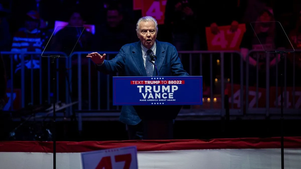 الممثل الأميركي جون فويت خلال تجمع جماهيري لدعم الرئيس المنتخب دونالد ترمب، في قاعة كابيتال وان أرينا قبل حفل التنصيب الرئاسي في واشنطن العاصمة، الولايات المتحدة. 19 يناير 2025 - Bloomberg