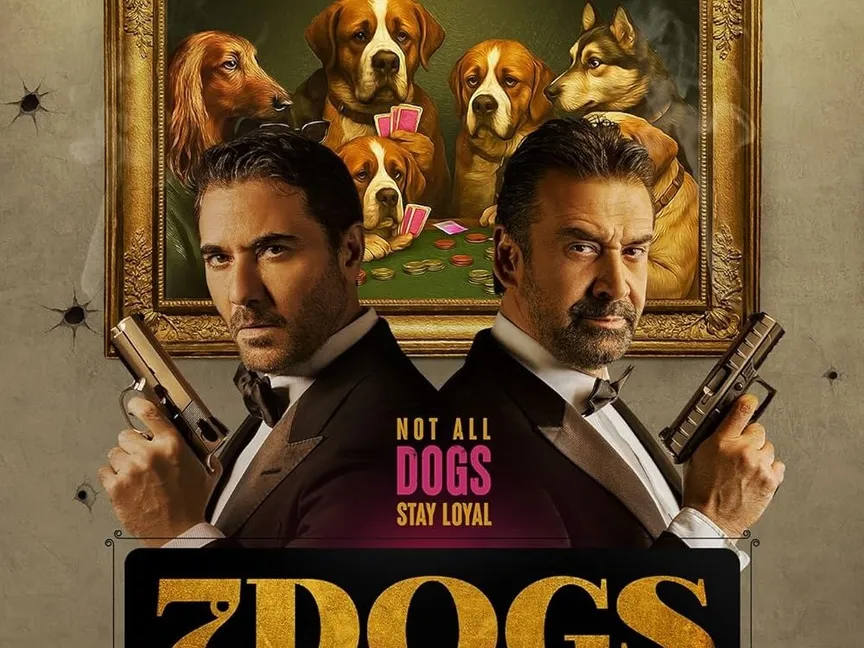 أحمد عز وكريم عبد العزيز على المصق الدعائي لفيلم  Seven Dogs للمخرجين علي وبلال فلاح - المكتب الإعلامي للشركة المنتجة