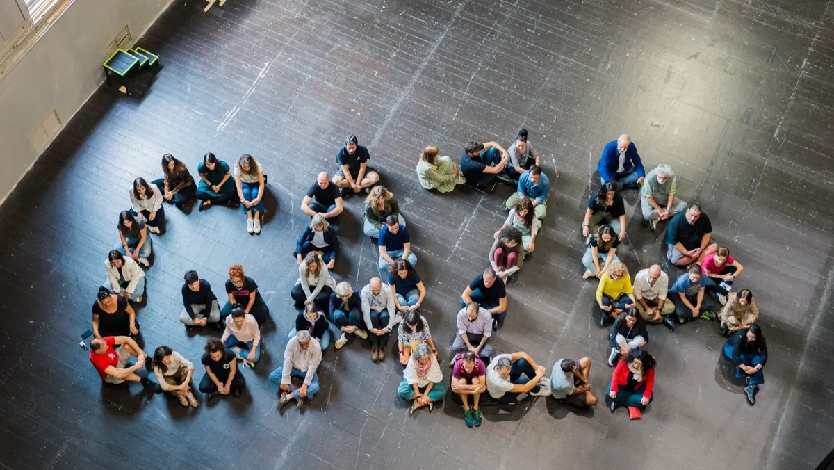 على خشبة مسرح لا پيرجولا (La Pergola) التاريخي في قلب مدينة فلورنسا الإيطالية، تجمعت أجساد نساء ورجال لتشكل معاً كلمة واحدة تُقرأ من الأعلى: "غزة".
