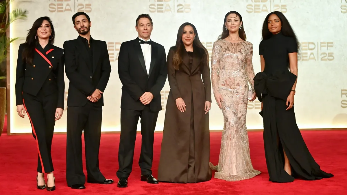 جمانا الراشد رئيسة مجلس أمناء مؤسسة البحر الأحمر السينمائي تتوسط أعضاء لجنة تحكيم مسابقة البحر الأحمر للأفلام