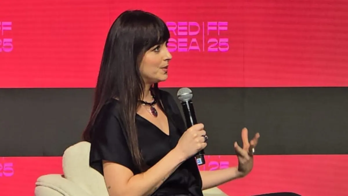 ظهرت النجمة الأميركية داكوتا جونسون، الجمعة، في جلسة حوارية ضمن فعاليات مهرجان البحر الأحمر السينمائي في جدة، لتقدم واحدة من أكثر المحادثات صراحة في المهرجان، تكلمت فيها عن الإنتاج، والتمثيل، والتطور الفني، وعلاقتها المعقدة بصناعة السينما، إضافة إلى سلسلة مشاريع تعمل عليها تحت مظلة شركة الإنتاج الخاصة بها TeaTime Pictures التي أسستها عام 2019 بالشراكة مع رو دونيلي، التنفيذية السابقة في نتفليكس.