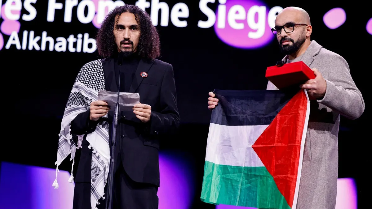 وفي كلمة ألقاها خلال حفل الختام السبت، اتهم المخرج الفلسطيني-السوري عبد الله الخطيب ألمانيا بأنها "شريكة في الإبادة الجماعية التي ترتكبها إسرائيل في غزة"، مما دفع وزيراً ألمانياً إلى الانسحاب من القاعة وأثار انتقادات من سياسيين آخرين.