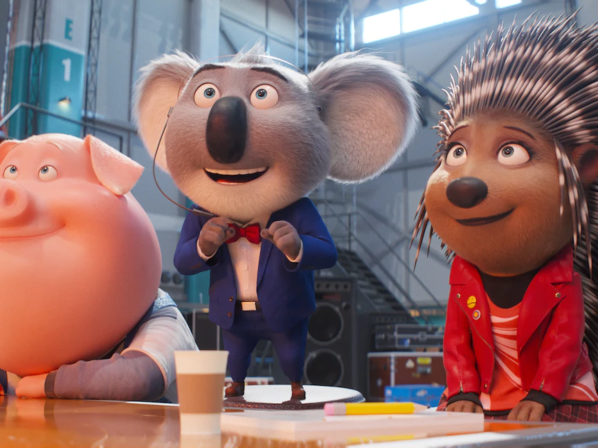 والفيلم مليء بالضحك والتسلية، ويضم نخبة من نجوم السينما والغناء منهم بونو، وماثيو ماكونوهي، وريس ويذرسبون، وسكارليت جوهانسن، وتارون إيجرتون، وتوري كيلي.