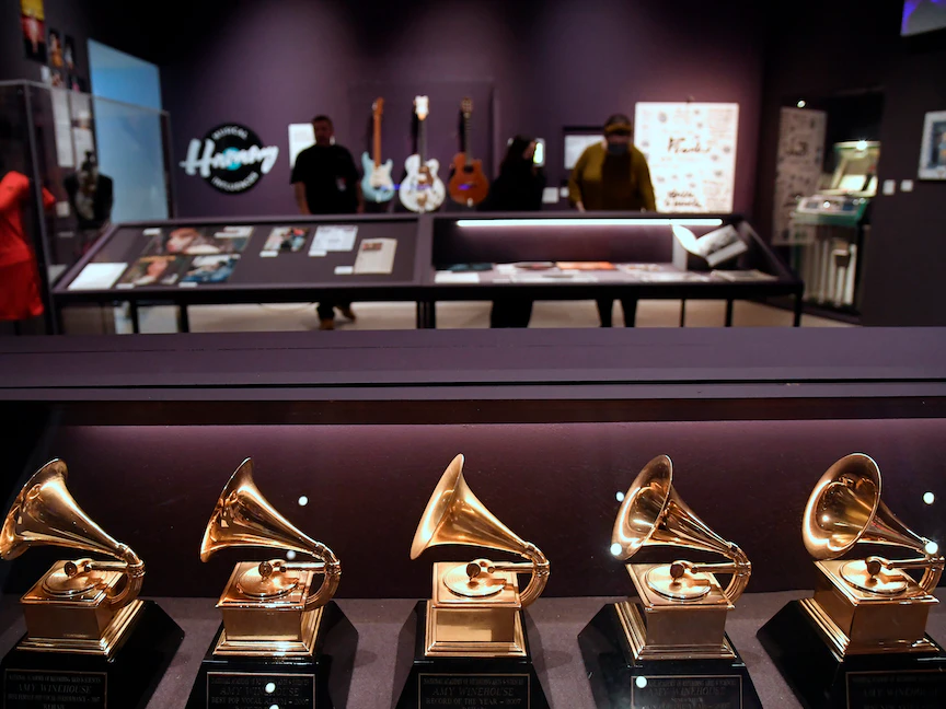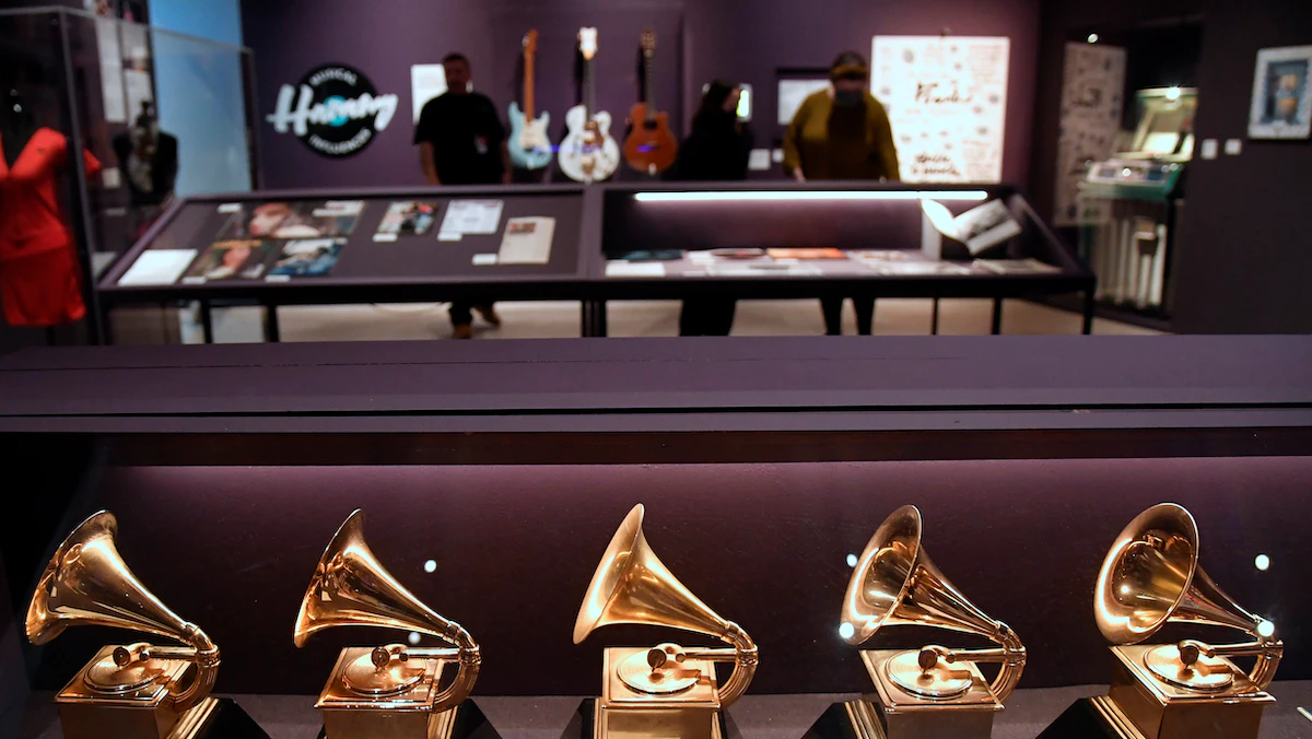 جوائز جرامي معروضة في متحف التصميم بلندن 24 نوفمبر 2021 - REUTERS