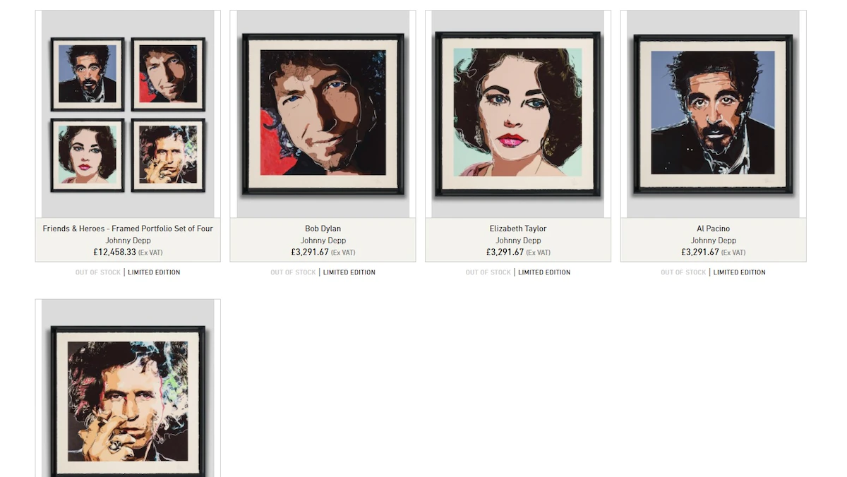 باع الممثل الأميركي جوني ديب، الخميس، مجموعة رسوم نفذها بالكمبيوتر تمثل عدداً من نجوم هوليوود وموسيقى الروك، بنحو 3 ملايين جنيه إسترليني (أكثر من 3.5 مليون دولار).
