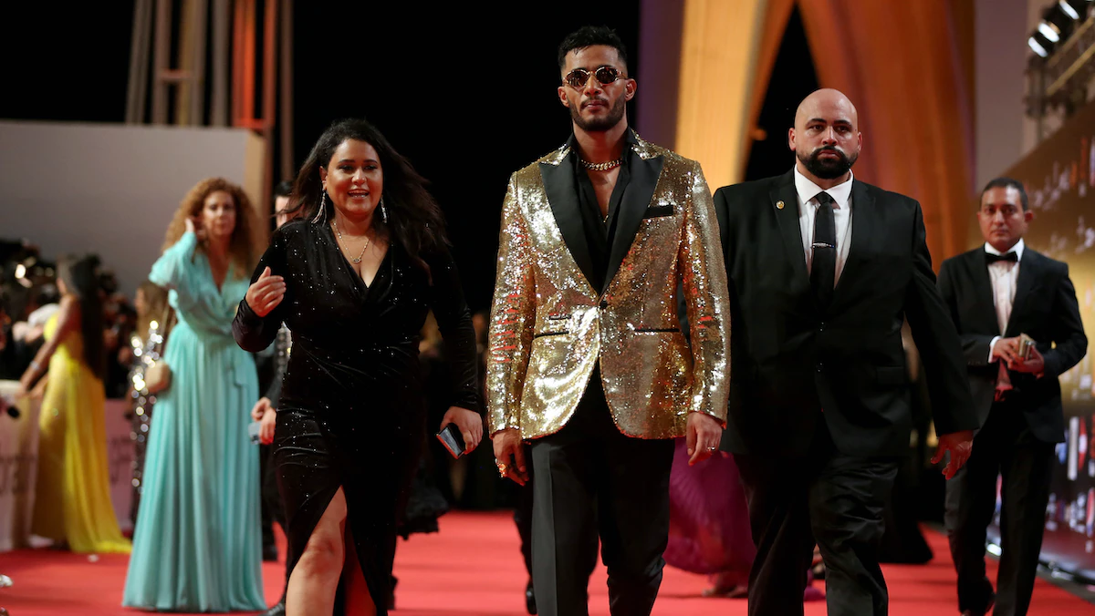 الممثل المصري محمد رمضان على السجادة الحمراء خلال مهرجان الجونة السينمائي في مصر. 14 أكتوبر 2021 - El Gouna Film Festival