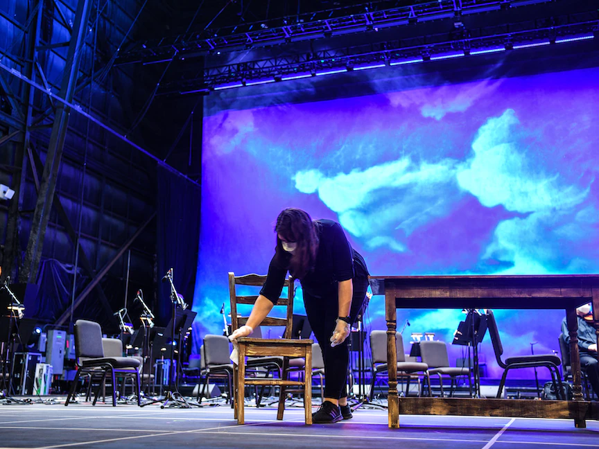 وسيكون عدد أعضاء الأوركسترا محدوداً، على أن تفصل مسافة مترين ونصف المتر بين عازفي الآلات الوترية، وثلاثة أمتار ونصف المتر بين عازفي الآلات الهوائية، بحسب ستيرن.