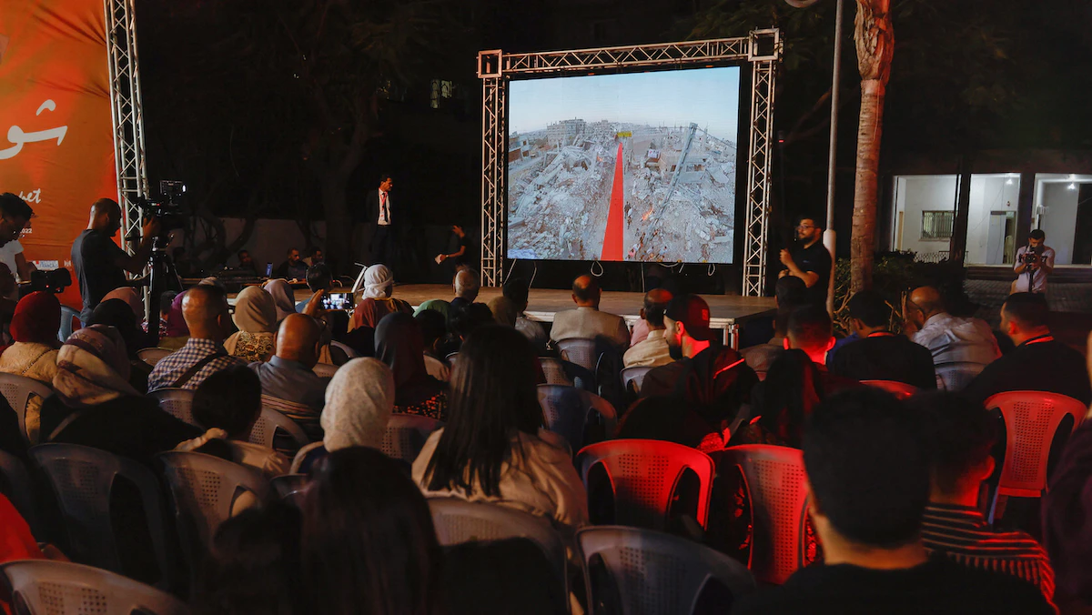 يعرض مهرجان السجادة الحمراء لأفلام حقوق الإنسان، نحو 43 فيلماً في مركز ثقافي في غزة تم تجديده مؤخراً، يتناول نصفها تقريباً الصراع المستمر منذ عقود مع إسرائيل فيما تستعرض بقية الأفلام قضايا حقوق الإنسان من أنحاء العالم.