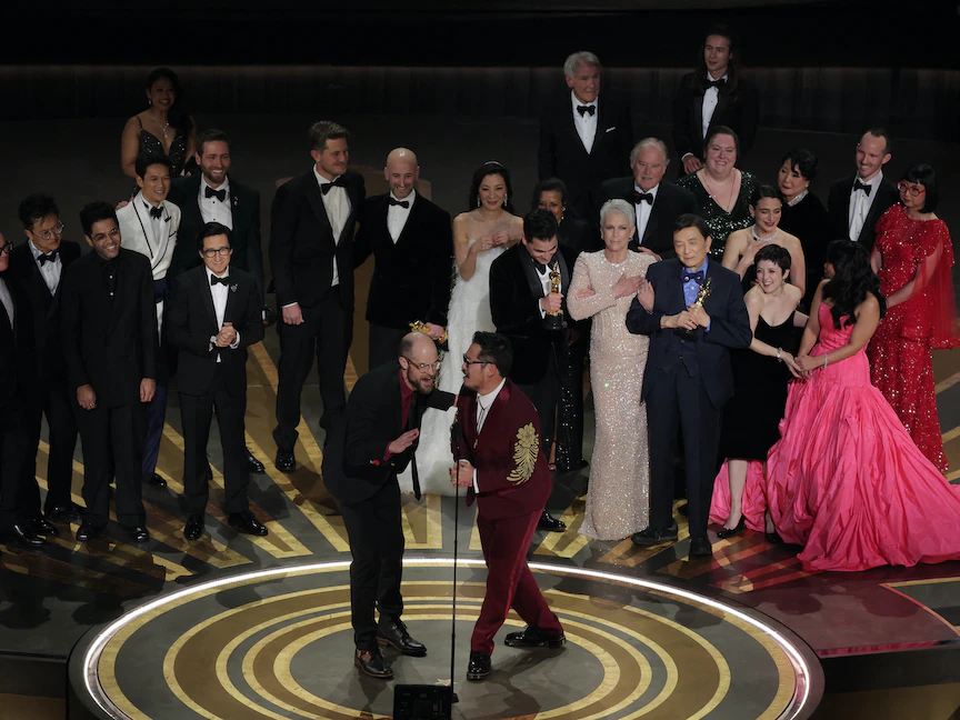 هيمن فيلم "Everything Everywhere All At Once" على حفل الأوسكار، الأحد، إثر فوزه بـ7 جوائز في فئات رئيسية، بينها أفضل فيلم، وأفضل ممثلة لبطلته ميشيل يو، التي أصبحت أول ممثلة من أصل آسيوي تنال هذه المكافأة الكبرى.