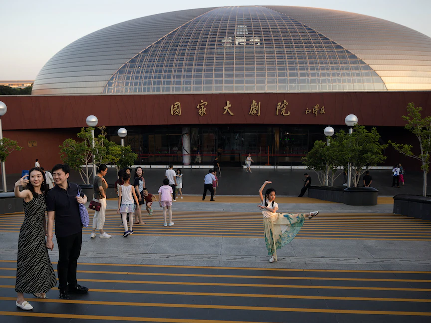 وقدمت الفرقة عرضا على مسرح المركز الوطني للفنون المسرحية في بكين، الثلاثاء، في أول جولة عالمية منذ جائحة كورونا.