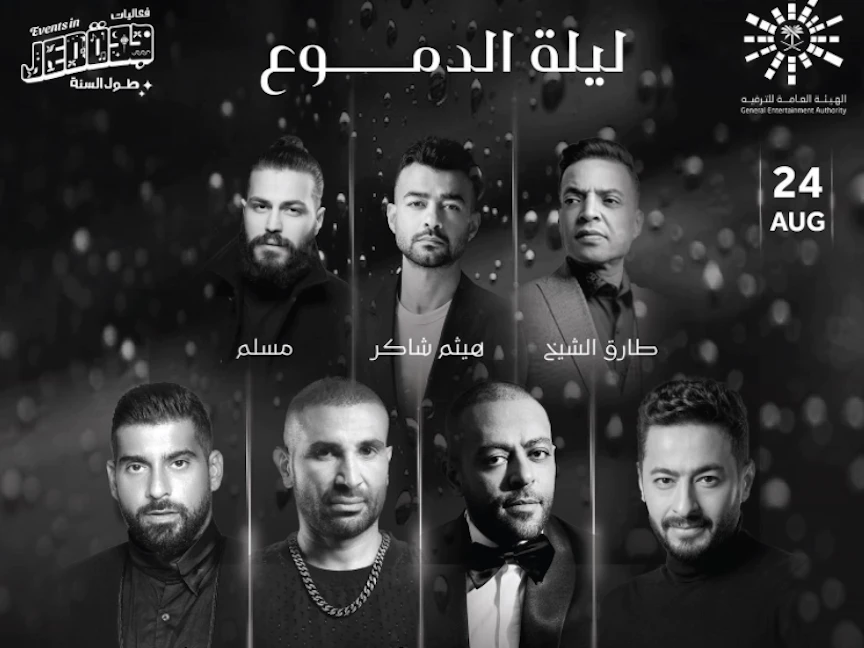 في حدثٍ استثنائي، ولأول مرة بالوطن العربي، يشهد مسرح "بنش مارك" بمدينة جدة في المملكة العربية السعودية، حفلاً غنائياً ضخماً، لعدد من نجوم الغناء المصريين، تحت عنوان "ليلة الدموع"، وذلك مساء يوم الخميس 24 أغسطس، ضمن فاعليات موسم جدة 2023.