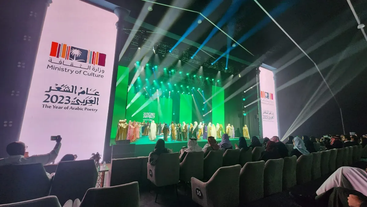 اختتمت وزارة الثقافة السعودية مبادرة عام الشعر العربي بإطلاق العرض المسرحي الأدائي "رسوم وطلل.. جغرافيا القصيدة" في ميادين محافظة الدرعية في العاصمة الرياض، ليكون تتويجاً لمشروع "مسار الشعر العربي"، وتعزيزاً لمكانته وترسيخه في الثقافة العامة.