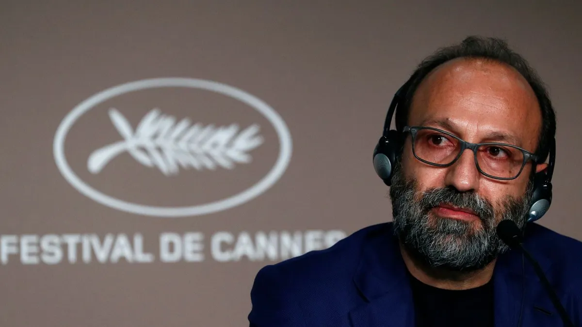 المخرج الإيراني أصغر فرهادي خلال مؤتمر صحافي في مهرجان "كان" السينمائي، بفيلم بعنوان "إيه هيرو" (بطل). - REUTERS