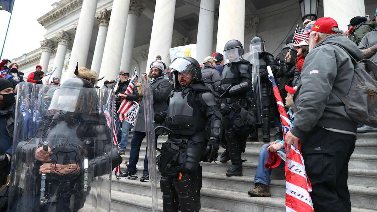 وبدعم من الحشود المتزايدة، شق طريقه إلى المبنى، وبحلول الساعة الثالثة عصراً بعد إطلاق النار على مهاجم زميل، أصيب عدد من ضباط الشرطة وكانت السلطات تطلب المساعدة، ولكنه هرع إلى الخارج، وباستخدام مكبر الصوت حث الآخرين على دخول المبنى، قائلاً: "إذا فعلنا ذلك معاً، فلا عنف!". وعندما علم بإجلاء النواب، أعلن النصر وهتف: "لقد قمنا بعملنا"، حسبما نقلت "نيويورك تايمز".