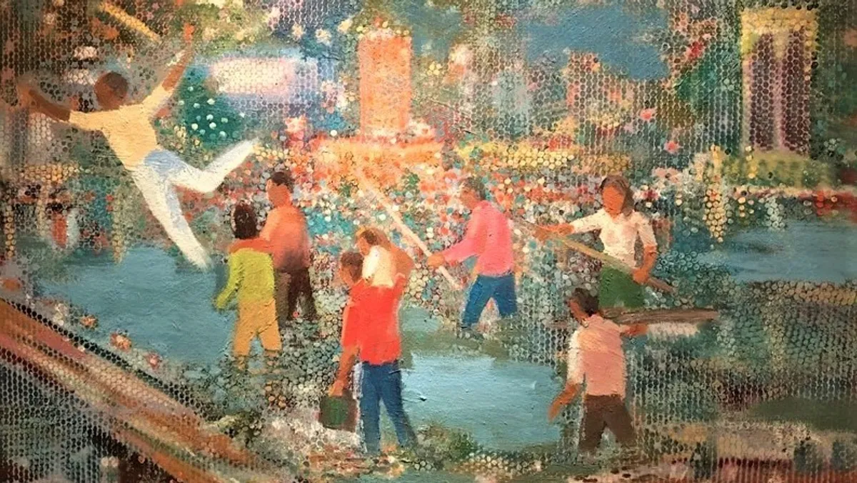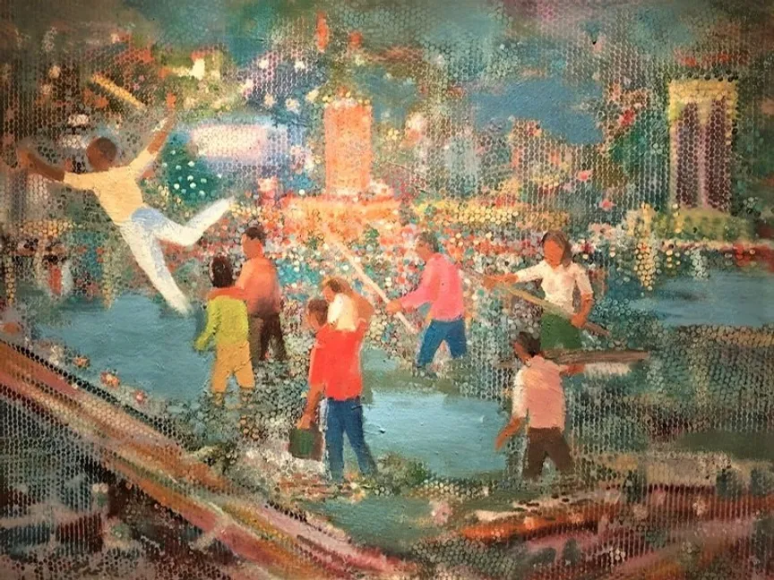 "محاولة لاستدعاء الحلم والأسطورة، لأن الواقع نفسه حزين، ولم يعد أمام الناس سوى الحلم. فاللوحات محاولة للنظر إلى الواقع برؤية مغايرة.