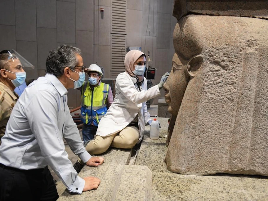 أعلنت وزارة السياحة والآثار المصرية، الاثنين، الانتهاء من تثبيت القطع الأثرية في البهو والدرج العظيم، في المتحف المصري الكبير بنسبة 100%، مشيرة إلى أنه جارٍ تنفيذ أعمال الترميم لها.