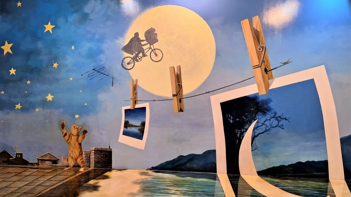 تتضمن اللوحات ثلاثية الأبعاد مداخل ضخمة للأهرامات، ومشاهد تعكس الحياة اليومية في مصر القديمة. يمكن للزوار دخول الأهرامات عبر اللوحات؛ هناك تماثيل ضخمة لرمسيس الثاني وأبو الهول ذات تفاصيل دقيقة، تبدو وكأنها منحوتات حقيقية، ما يُتيح للزوّار التقاط صور بجانبها وكأنهم في موقع أثري حقيقي.