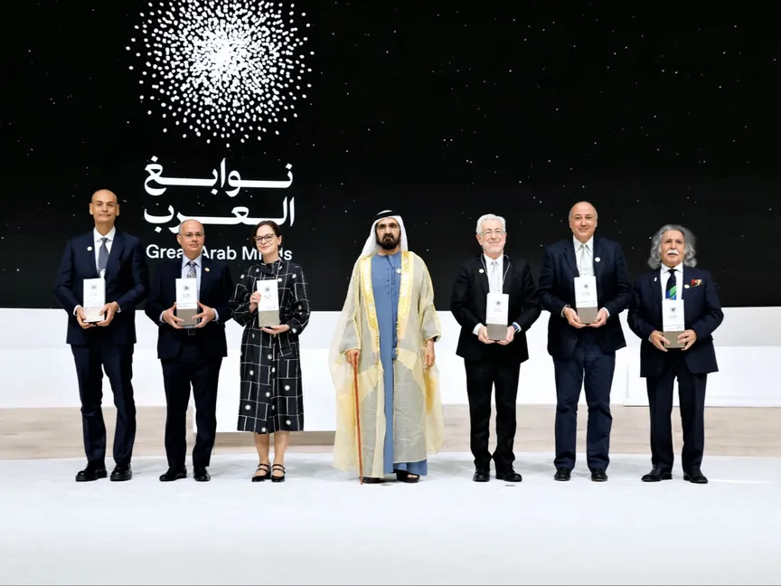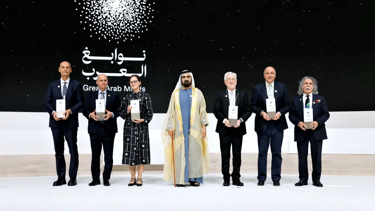 كرّم الشيخ محمد بن راشد آل مكتوم، نائب رئيس دولة الإمارات، حاكم دبي، الفائزين بلقب جائزة "نوابغ العرب 2024"، في حفل أقيم الخميس، في متحف المستقبل.