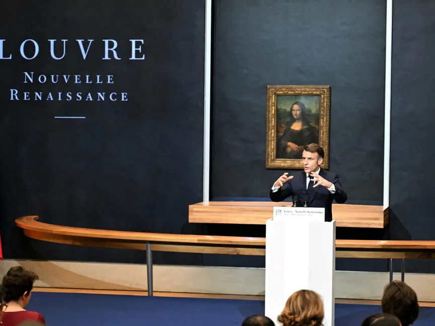 وقال ماكرون خلال كلمة ألقاها من منصّة بجانب "الموناليزا": "أعتقد أن الحديث عن المدى الطويل عن الثقافة والفن، هو إحدى الرسائل التي يجب على فرنسا نقلها إلى العالم. إنها أيضاً معركة سياسية".