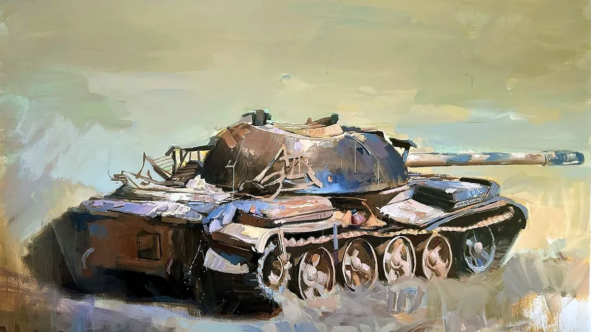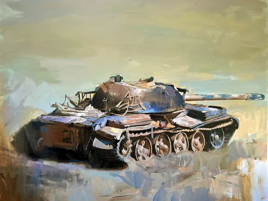 كل دبابة مرسومة وحيدة، كل أرض متصدّعة على سطح اللوحة، ليست فقط رمزاً لما كان، بل نداء لما يجب أن يكون. إنها دعوة للتأمل، لكن أيضاً تذكير صارخ بحتمية السلام الذي لا يزال مفقوداً.