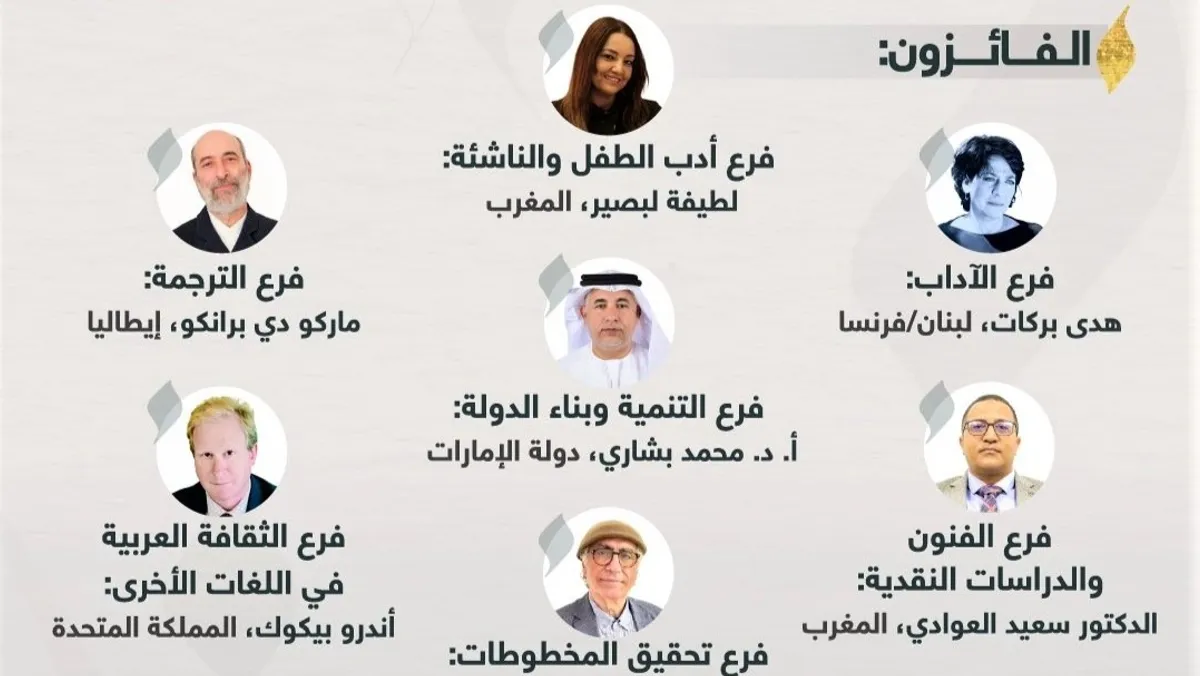 وفازت بجائزة فرع الآداب، الكاتبة اللبنانية الفرنسية هدى بركات، عن روايتها "هند أو أجمل امرأة في العالم"، كما فازت الكاتبة المغربية لطيفة لبصير، بجائزة فرع أدب الطفل والناشئة، عن كتابها "طيف سَبيبة".