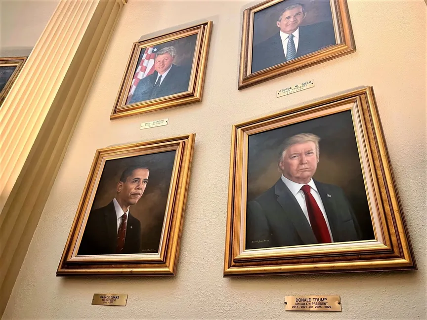 وكان السياسيون المحليون جمعوا أكثر من 10 آلاف دولار، عبر حساب "GoFundMe" لتكليف سارة بوردمان برسم اللوحة، التي تمّ الكشف عنها في مبنى المجلس التشريعي لولاية كولورادو عام 2019، إلى جانب صور أخرى لرؤساء أميركيين.