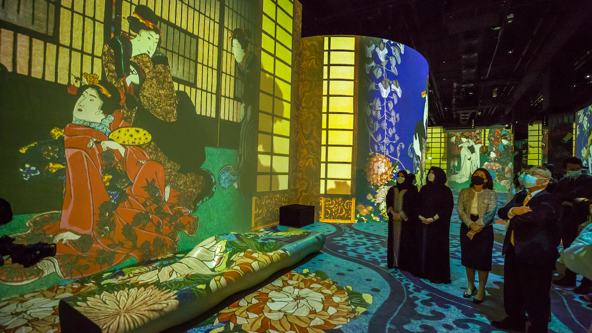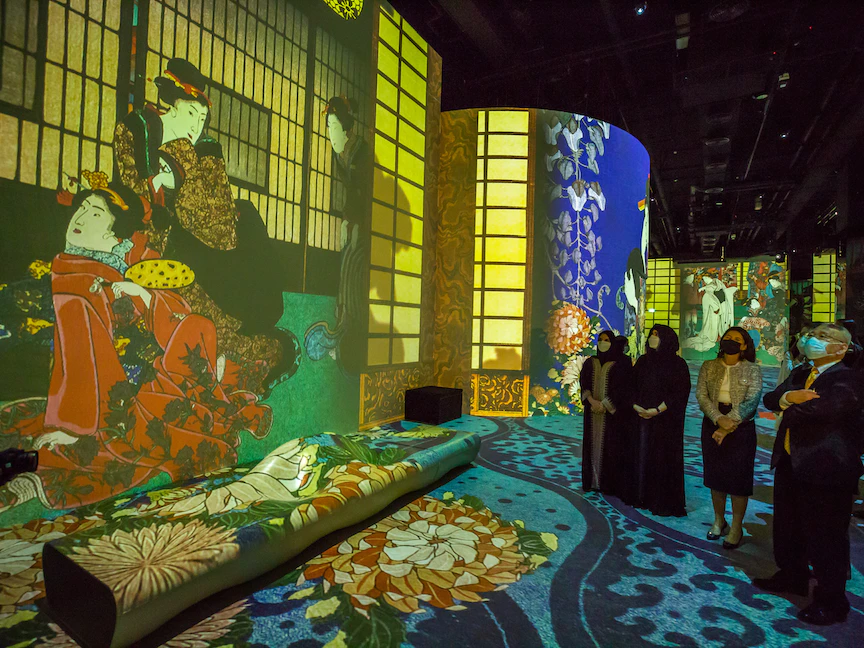 ويقدم المركز مساحة فنية رائدة تعتمد على التكنولوجيا هي الأولى في المنطقة، من خلال 130 جهاز عرض، و58 مكبر صوت، على مساحة 2700 متر مربع، لإضفاء الحيوية على الفن المتميز والمعاصر بنحو 3000 صورة رقمية متحركة عالية الدقة.