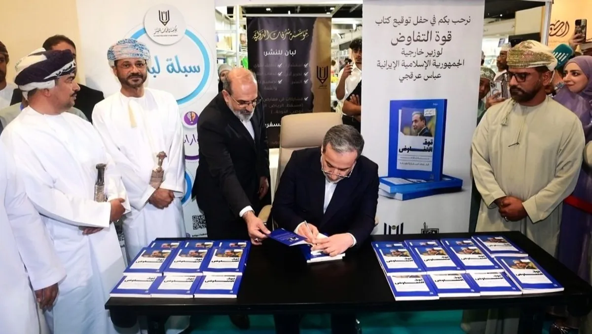 على وقع المفاوضات المكثّفة بين الولايات المتحدة وإيران، بشأن البرنامج النووي لطهران، والتي تضج بها أروقة سلطنة عُمان، وقّع وزير الخارجية الإيراني عباس عراقجي، كتابه "قوّة التفاوض"، في جناح دار "لُبان"، ضمن فعاليات معرض مسقط الدولي للكتاب في دورته الــ29.