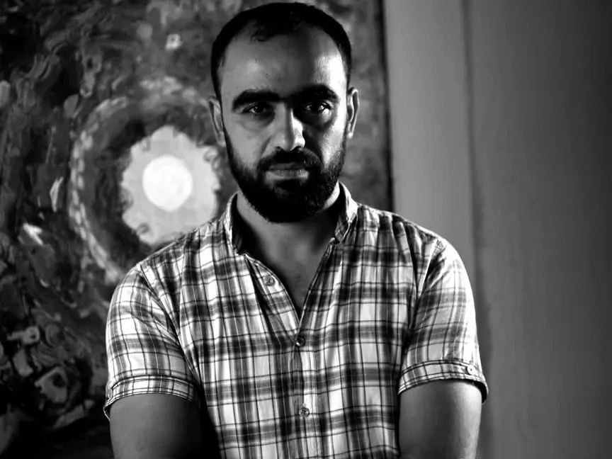 نبيل أبو غنيمة، فنان تشكيلي فلسطيني، عاش في غزة خلال الحرب وانتقل حالياً إلى فرنسا. تتّسم أعماله باستخدام العيون المذعورة، التي يمنحها دلالات خاصة بالحالة الفلسطينية، في ظل ما يحدث من تهجير وخوف وفقدان للأمان.