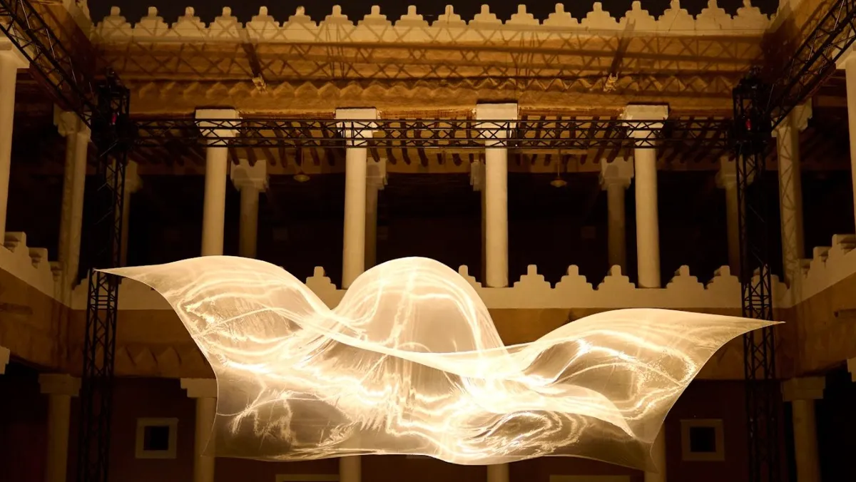 وجاء العرض بمثابة الإعلان للانطلاقة الرسمية للاحتفال، حيث احتضن عروضاً ضوئية وتجارب فنية تعكس التوجهات الجديدة للنسخة الخامسة، تحت شعار "في لمح البصر".
