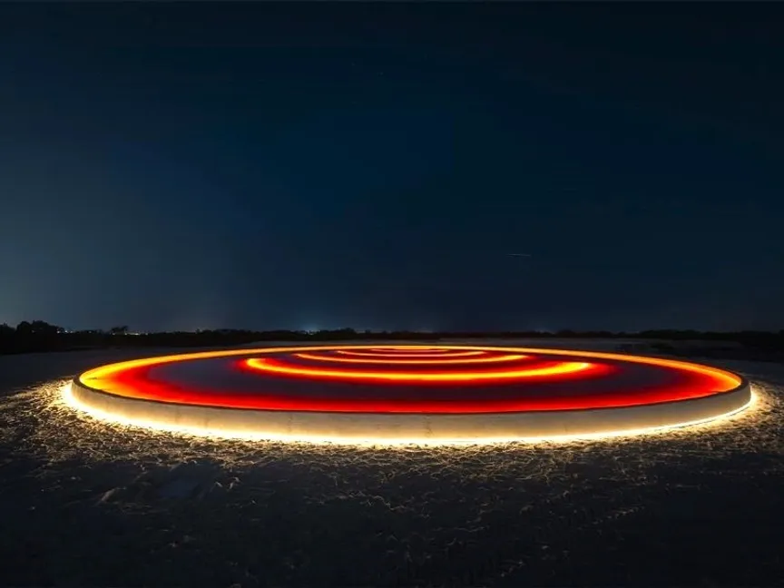 وللمرة الأولى، يمتد المعرض إلى مدينة العين، إلى جانب انتشاره في مواقع أخرى داخل العاصمة، في انعكاس لحضوره الثقافي المتنامي. ويقدّم المعرض 15 عملاً فنياً ضوئياً خاصاً بمواقع محددة، في جزيرة الجبيل، وسوق الميناء، وفي واحتي القطارة والجيمي في العين، المدرجتين في قائمة اليونسكو للتراث العالمي.