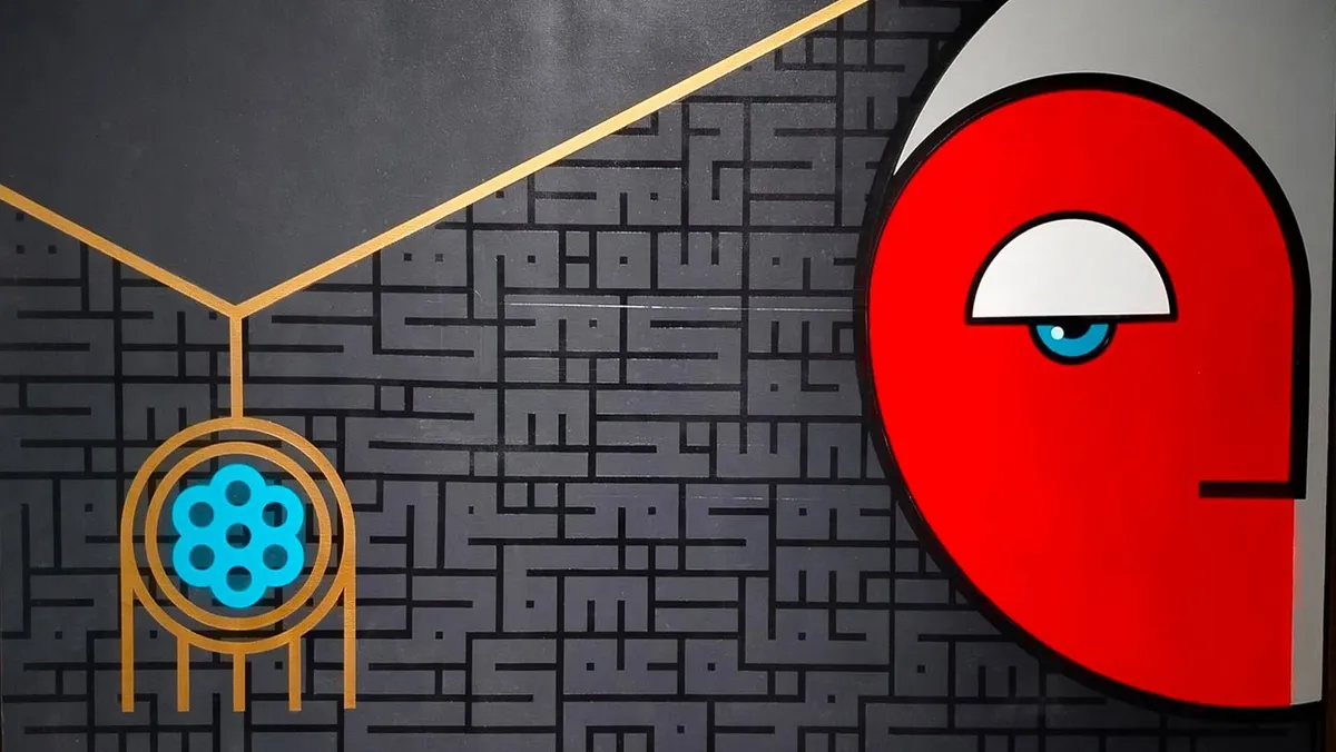 عمل فني للخطاط العراقي باسم المهدي في معرضه الأخير "طواف". ديسمبر 2025 - الشرق