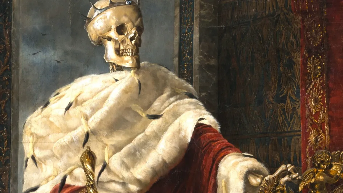 عام 1887 أنجزت الفنانة لوحتها التي مثّلت بداية سلسلة من الأعمال الرمزية ذات الأحجام الكبيرة. في وسط اللوحة يقف هيكل عظمي كشخصية حاكمة مرتدياً عباءة أرجوانية من الفرو، ممسكاً بسيف في يده اليمنى، ويُسقط العرش الفخم بيده اليسرى في إيماءة ذات سلطة. يرتدي الهيكل تاجاً حديدياً مسنناً على جمجمته، بينما يسقط تاج مرصّع بالأحجار الكريمة على الأرض. تقف قدمه اليمنى على كرة أرضية، فيظهر الموت هنا حاكماً منتصراً للعالم.