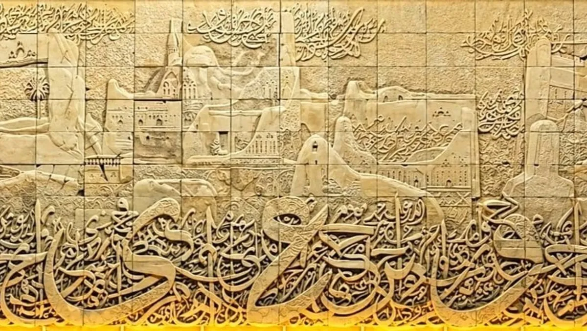 تظهر الجدارية بشكل بانورامي يمتدّ بطول 20 متراً، وارتفاع 6 أمتار، وعمق يصل إلى 20 سنتيمتراً. وتتدرّج مستويات النحت إلى 15 طبقة، ما يمنحها بعداً بصرياً من خلال التقاء مستويات النحت مع الضوء.