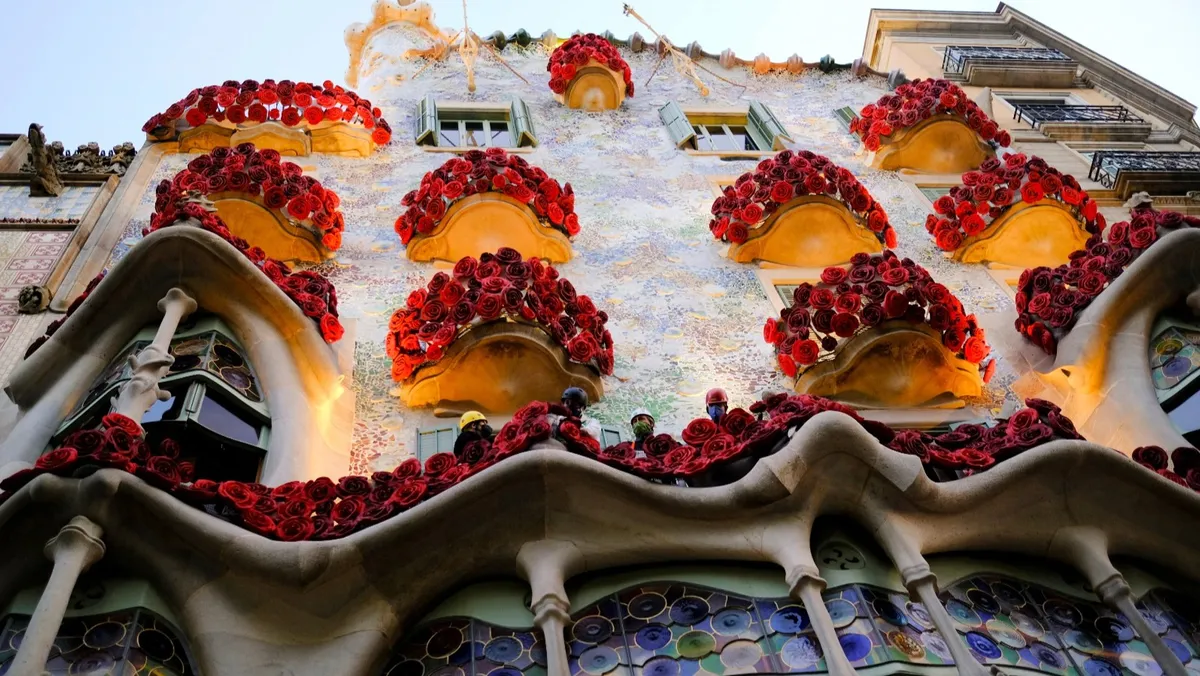 لكن أبريل هذا العام يحمل خصوصية في برشلونة، بعد أن أضافت المدينة إلى قائمة احتفالاتها مئوية مهندسها أنطوني غاودي، حيث تزيّنت شرفات "كازا باتيو" بأكثر من 1300 وردة حمراء، جسّدت الأسطورة الكتالونية عن سانت جوردي (شفيع كتالونيا)، الذي قتل تنيناً كي ينقذ أميرة، ثم نبتت شجيرة ورد أحمر من دم التنين.