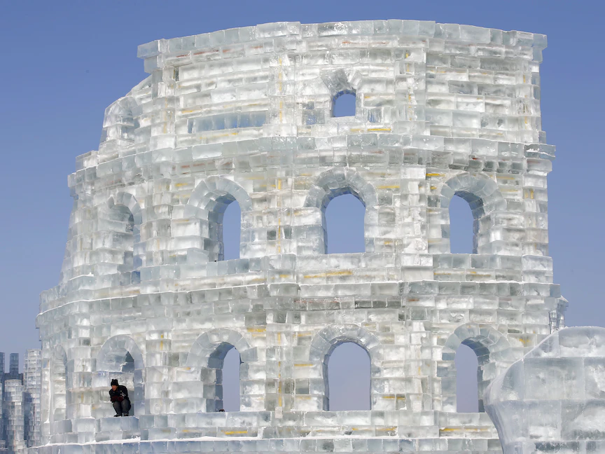 على ارتفاع نحو 3350 متراً في لاداخ بجبال الهيمالايا الهندية، أقامت مجموعة من الفنانين مجسماً مصغّراً لمدرج الكولوسيوم الروماني الشهير، مستخدمين كتلاً من الجليد قطعت بالمنشار من النهر المتجمد لقرية شيلونج الصغيرة.
