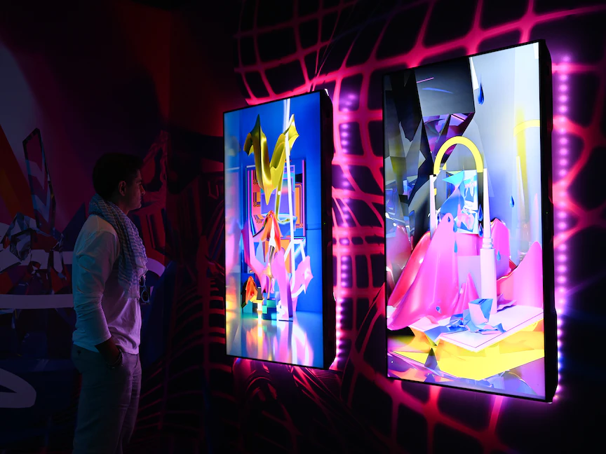 ويتيح المعرض كذلك الفرصة للتدقيق من خلال الرموز غير القابلة للاستبدال NFTs والعملات المشفرة وفن الفيديو والواقع الافتراضي الذي نما منذ ظهور الفن الرقمي في الثمانينيات.