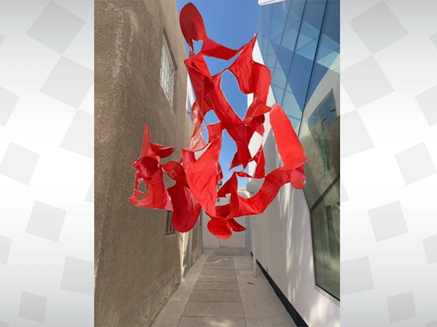 وتأخذ المنحوتة المعاصرة شكل الزهرة باللون الأحمر، ومن المقرر تعليقها بالقرب من "مركز الشيخ إبراهيم للثقافة والبحوث"، وبيت النوخذة، بين المبنى الحديث نسبياً ومبنى يرتبط بقصة الماضي وحكايات اللؤلؤ، بحسب وكالة أنباء البحرين (بنا).