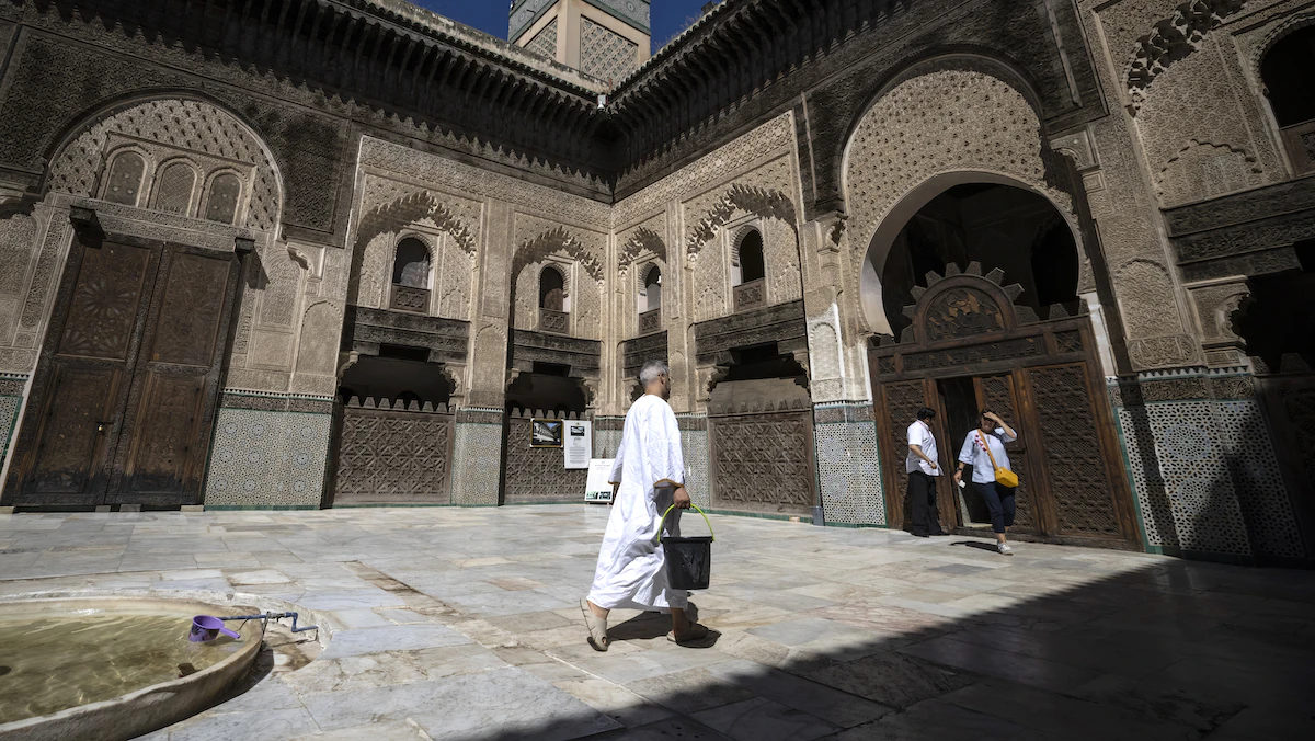 يفخر الطالب معاذ السويف بإقامته بين "أحضان تاريخ علمي عريق"، في إحدى غرف المدرسة البوعنانية المشيدة في القرن الـ14، والتي رُممت مؤخراً على غرار مدارس عتيقة أخرى بمدينة فاس المغربية.