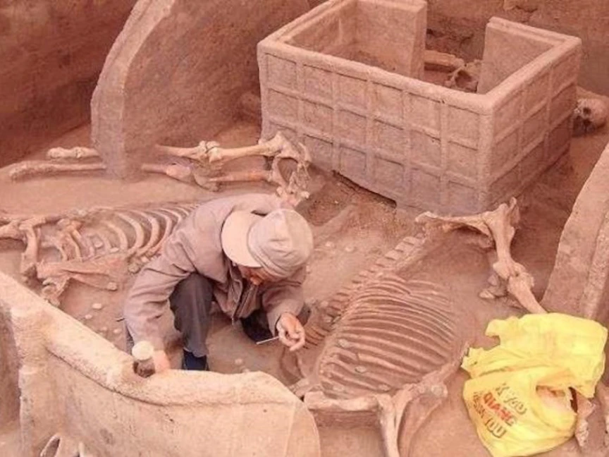 وأوضحت أكاديمية شنشي لعلم الآثار الصينية أن المواد المكتشفة مصنوعة من الفخار والحجر والنحاس ومواد أخرى، كما وجد علماء الآثار 11 بلاطة أرضية عليها نقوش مكتشفة في الغرفة الجانبية لأحد المقابر، تحتوي على كلمات تشير إلى الفترة المحددة التي صنعت فيها، وأنماط مثل التنين، وفقاً لما أوردته وكالة الأنباء الصينية (شينخوا).