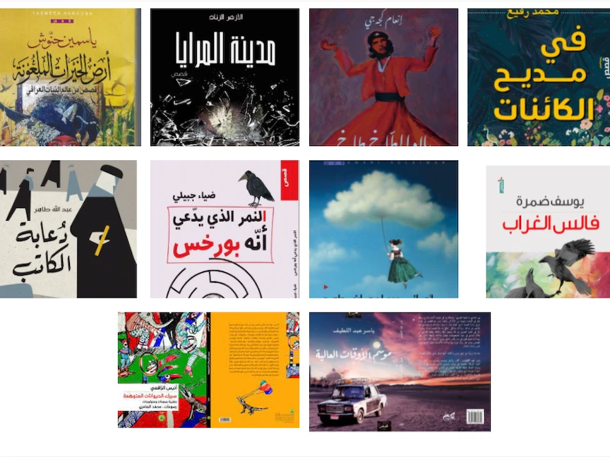 والمجموعات هي: "مدينة المرايا" للتونسي الأزهر الزناد، و"غيمة يتدلى منها حبل سميك" للأردنية أماني سليمان داود، و"بلاد الطاخ طاخ" للعراقية إنعام كجه جي، و"سيرك الحيوانات المتوهّمة" للمغربي أنيس الرافعي، و"النمر الذي يدعي أنه بورخس" للعراقي ضياء جبيلي.