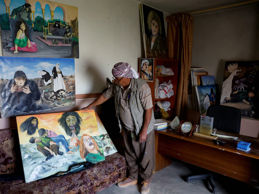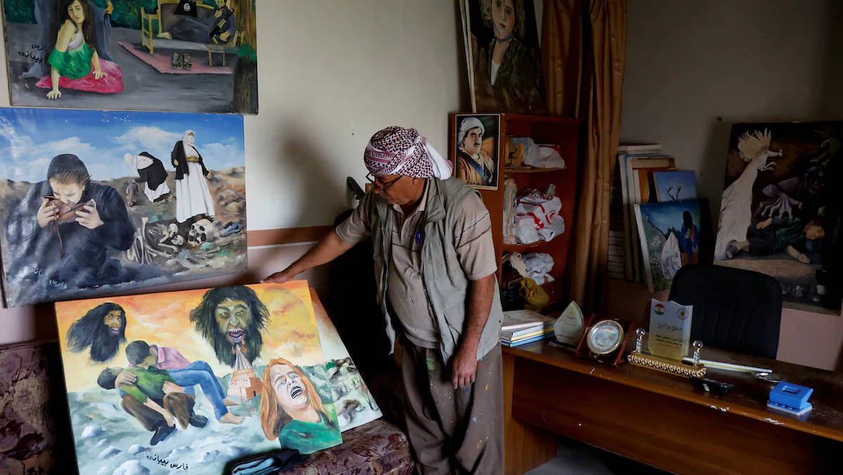 يقضي الفنان فارس بيباني أيامه وهو يرسم جداريات في قرية بيبان بمحافظة نينوى شمال العراق لإعادة إحياء تراث الإيزيديين وتجميل المنطقة.