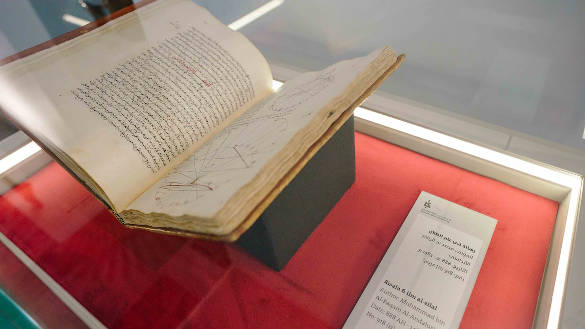 أما المخطوطات فهي: "المسالك والممالك" لمؤلفه أبي عبيد عبد الله بن عبد العزيز بن محمد البكري الأندلسي، وهي أقدم مخطوطة معروضة يعود تاريخها إلى القرن الثالث عشر، ومخطوطة "سرح العيون في شرح رسالة ابن زيدون"، لمؤلفها جمال الدين بن نباتة المصري.