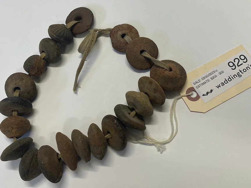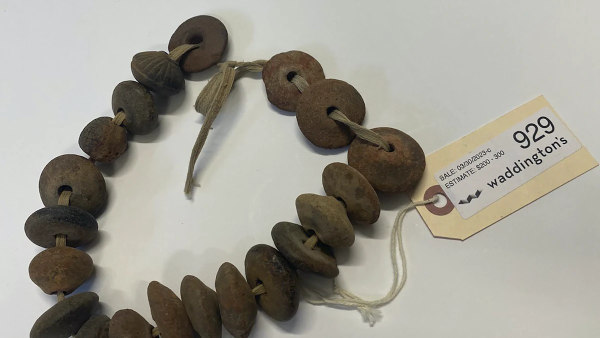 وأضافت الوزارة: "كانت شركة المزادات الكندية (وادينجتونز)، ومقرها في تورنتو، طرحت على موقعها الإلكتروني (ذي سايلر روم)، القطع التي رصدتها وزارة الثقافة، ومن بين العناصر التي طُرحت للبيع، سوار من البذور".