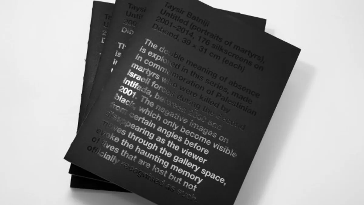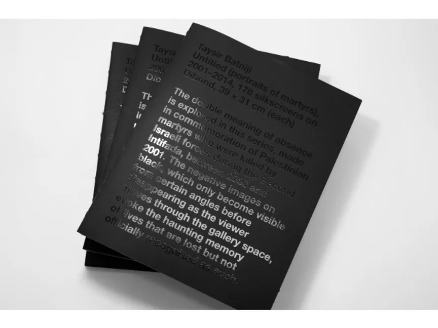 وكتب البطنيجي في مقدّمة كتابه، "في هذه السلسلة نستكشف المعنى المزدوج للغياب عبر صورٍ سالبة باللون الأسود،  وبأسلوب طباعة الشاشة الحريرية، غير المرئية إلا من زوايا مُحدّدة، ممّا يستحضر الذكرى المؤلمة للأرواح التي أُزهقت بشكلٍ مأساوي، ولم تلقَ اعترافاً رسمياً بهذه الحقيقة".