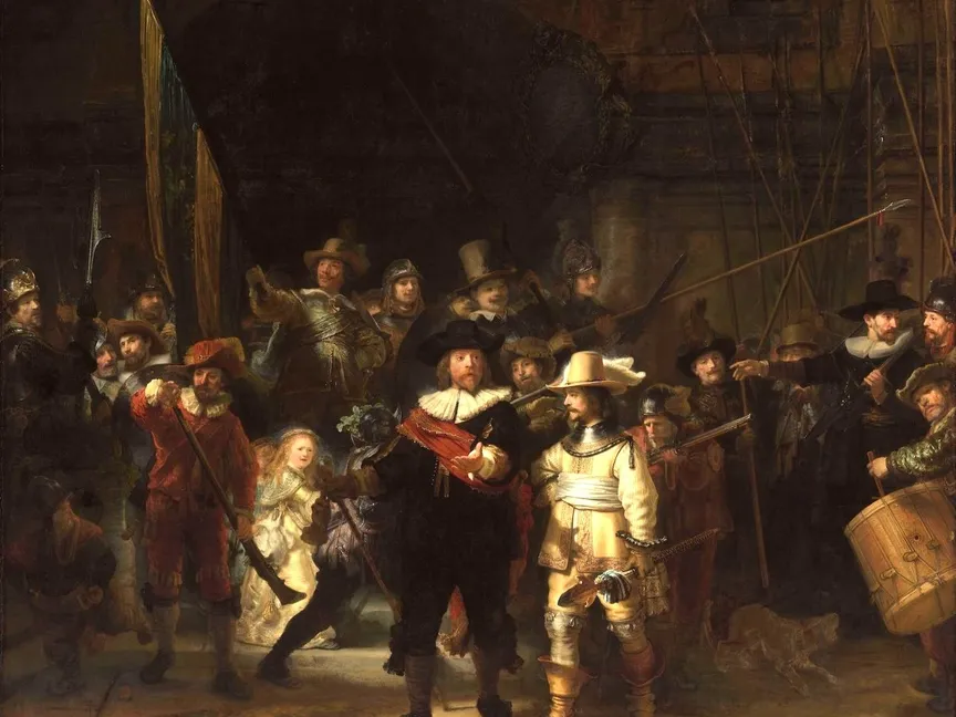 ولا تزال "الحرس الليلي" حتّى اليوم واحدة من أشهر اللوحات في التاريخ. وهي بحجم خمسة أمتار في أربعة أمتار، وقد رسمها رامبرانت بطلب من فرقة الكابتن فرانس بانينغ كوك، وهي فرقة تضمّ مجموعة من الحرّاس المُكلّفين بحراسة أحد أحياء أمستردام، لتعليقها في القاعة الكبرى لمبنى تابع لهم، كنوع من التأريخ لبطولاتهم.