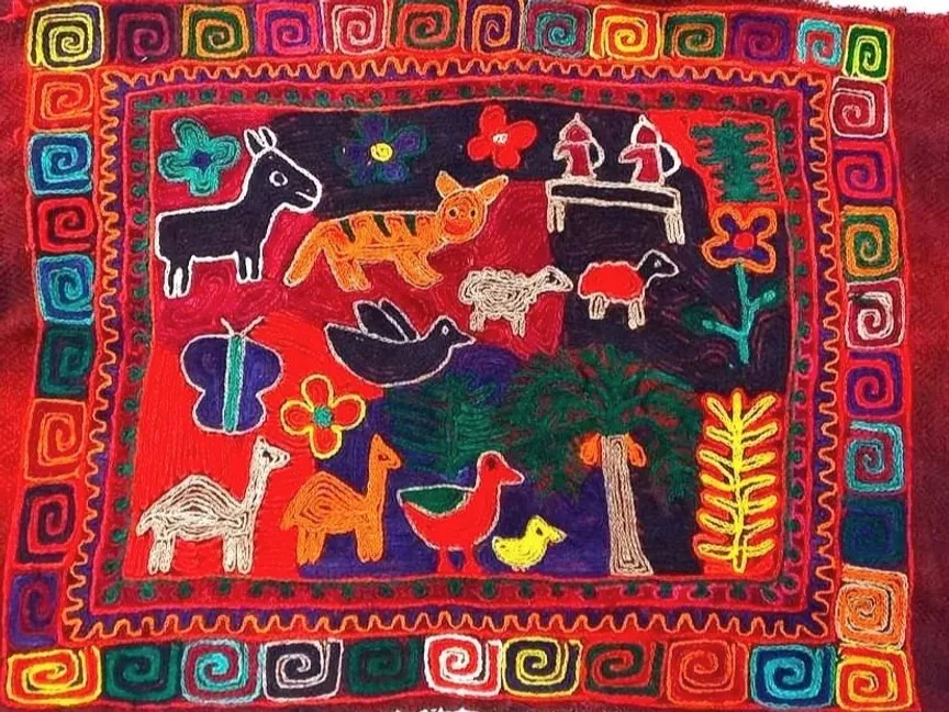 تبدو الأشكال في إيزار البيرو، مكتملة المعالم، مُخطّطة على نحو دقيق، أفاعٍ، وجوه، أشكال شعبية وسواها، كما تبدو الوحدة اللونية الهارمونية واضحة فيه ومعتنى بها، في خلاف إلى حدّ ما مع العراقي الذي يكسر القواعد اللونية والشكلية وكأنه مشغوف بذلك، فضلاً عن عدم وجود التخطيط الدقيق للأشكال، استكمالاً لفكرة الكسر والتلقائية وتجاوزاً للروتين والنمطية.