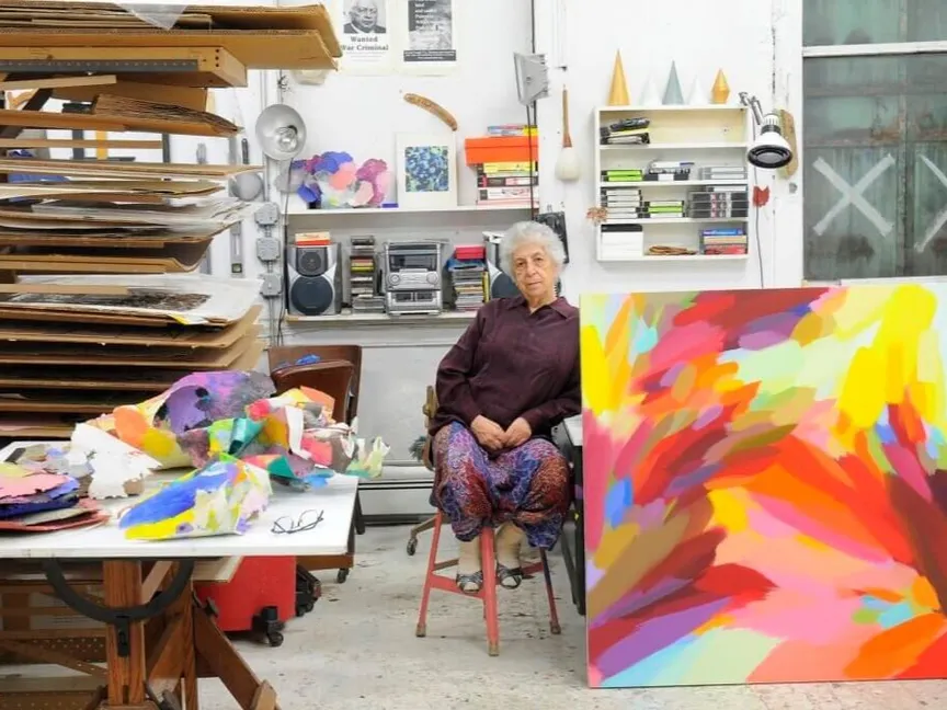 منذ أكثر من خمسة عقود، تنتج حلبي أعمالاً تجريدية مليئة بالتدفّقات اللونية؛ أنجزت بعضها بمساعدة أجهزة الكمبيوتر. لكن إنجازاتها تتجاوز مجال الرسم، فقد أصبحت أول عضوة هيئة تدريس بدوام كامل في كلية "ييل" للفنون خلال السبعينيات، وهي كاتبة وباحثة في مجال الفن.