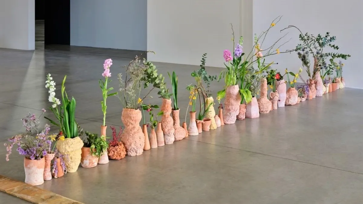 في معرضها الجديد "اتصلوا واجتمعوا. الأخوات. أعاصير اللهب. عظام اللبؤة والثعابين والحجارة"، الذي يقام في هنغار  Pirelli Hangar Bicocca في ميلانو، تمزج الفنانة Chiara Camoni المواد العضوية الغنية مع السيراميك الملموس، وتتميّز أعمالها باستخدام الأشياء التي تنتمي إلى العالم المنزلي أو المواد العضوية.